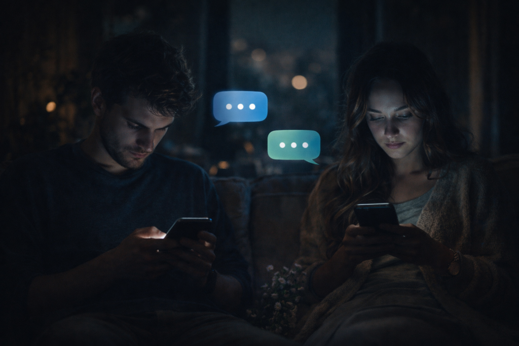 في المقابل، يتيح العالم الافتراضي إمكانية التحكم في الصورة المقدَّمة للآخر. يمكن تعديل الكلمات، اختيار اللحظات، وإخفاء ما لا يُراد إظهاره. وهكذا، لا يتعامل الطرفان مع الواقع بقدر ما يتعاملان مع نسخة منتقاة منه. ومع مرور الوقت، قد تتسع الفجوة بين “الشخص الحقيقي” و”الشخص الرقمي”، مما يجعل اللقاء الواقعي -إن حدث- لحظة صدمة تعيد تشكيل كل التوقعات.